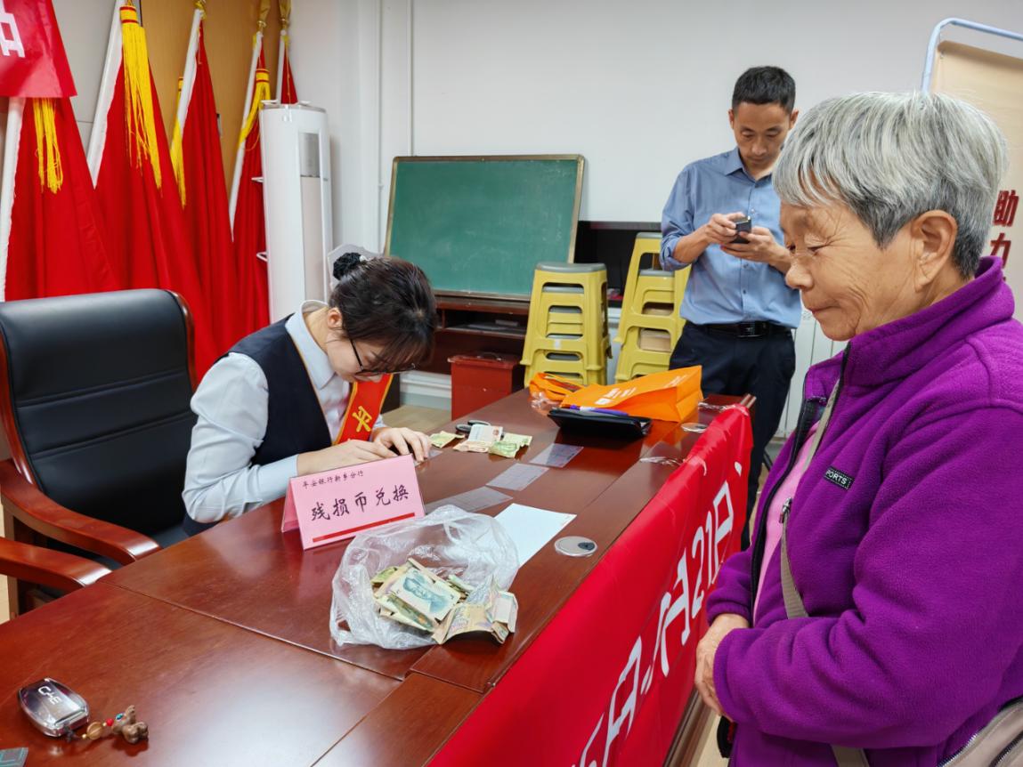 平安银行新乡分行还开展了现场兑换残损币的活动,工作人员按照残损币兑换办法,在给村民兑换的同时,现场实操给村民朋友们讲解兑换规则。