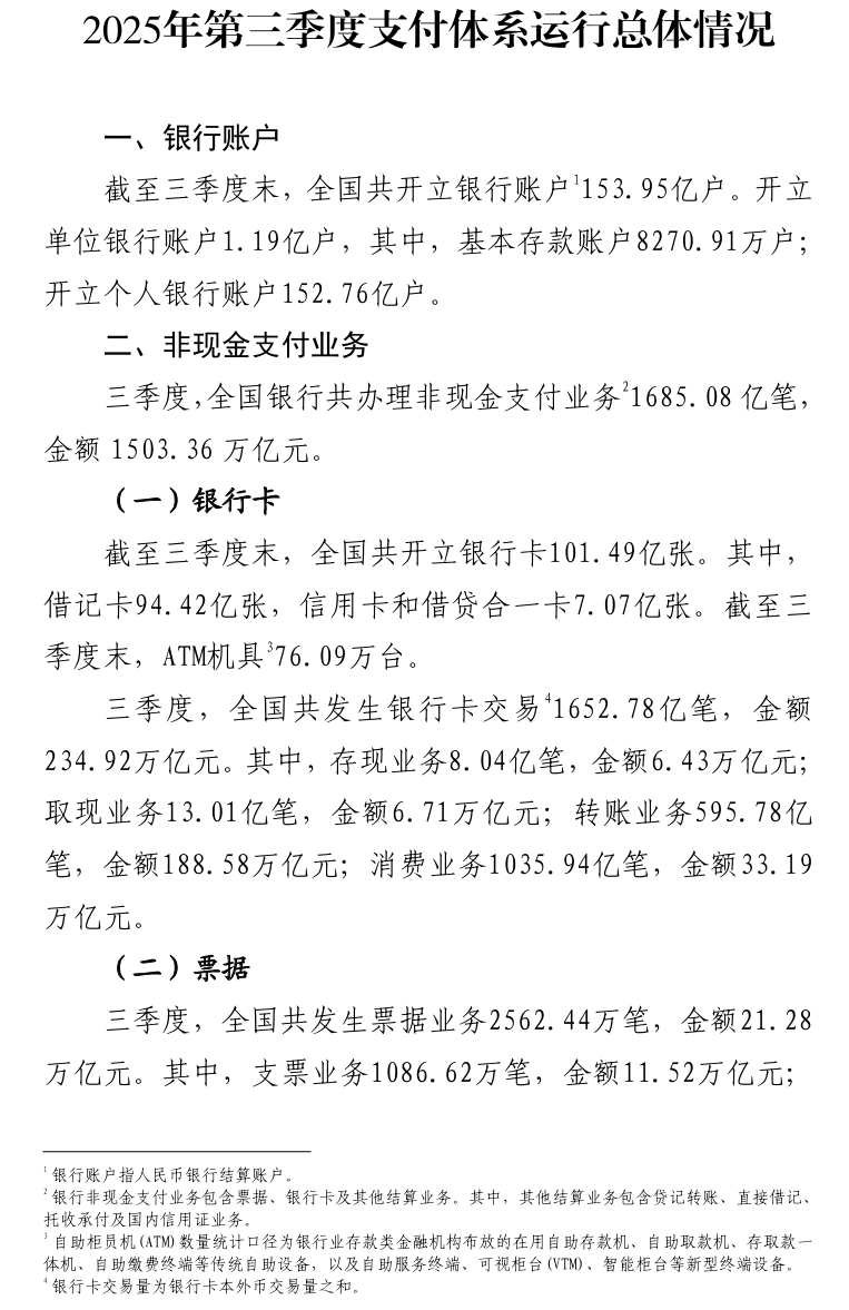 【大河财立方消息】 12月3日,中国人民银行发布2025年第三季度支付体系运行总体情况。