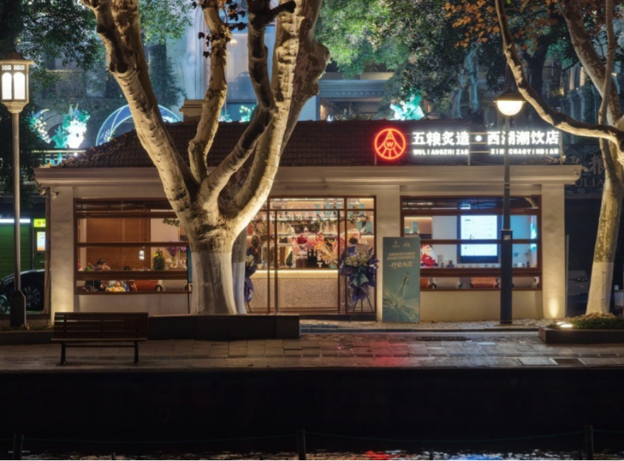 在树立标杆的同时,五粮液通过多元业态,将美酒体验下沉至更日常的消费场景。在海外,新加坡“五粮液大酒家”包厢以珍稀古窖池命名,营造沉浸式文化体验;在国内,全国首家五粮液“五粮·炙造”新潮体验店在四川宜宾上线,迅速成为备受年轻消费群体青睐的潮流打卡地。2025年12月,五粮液西湖文化体验馆暨五粮炙造·西湖潮饮店在杭州北山街开业,将五粮液与咖啡、茶饮创新融合,成为年轻消费者Citywalk的打卡点,让品牌在不同圈层中找到共鸣点。