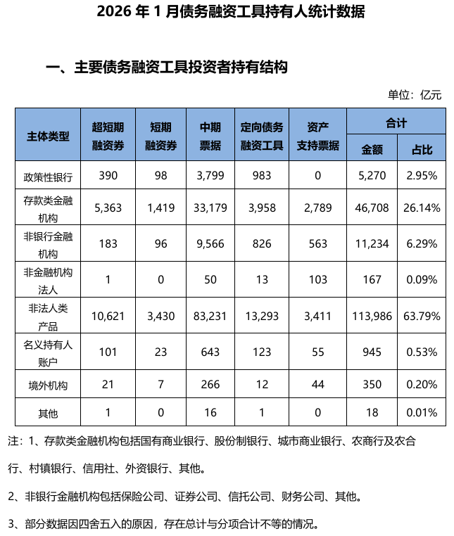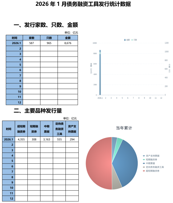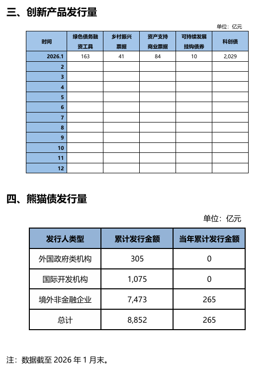 【大河财立方消息】3月3日,中国银行间市场交易商协会披露2026年1月债务融资工具发行统计数据。