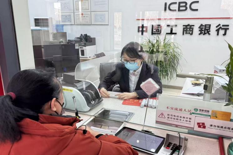 工行新乡青龙路支行为到店老年客户提供适老化工具。