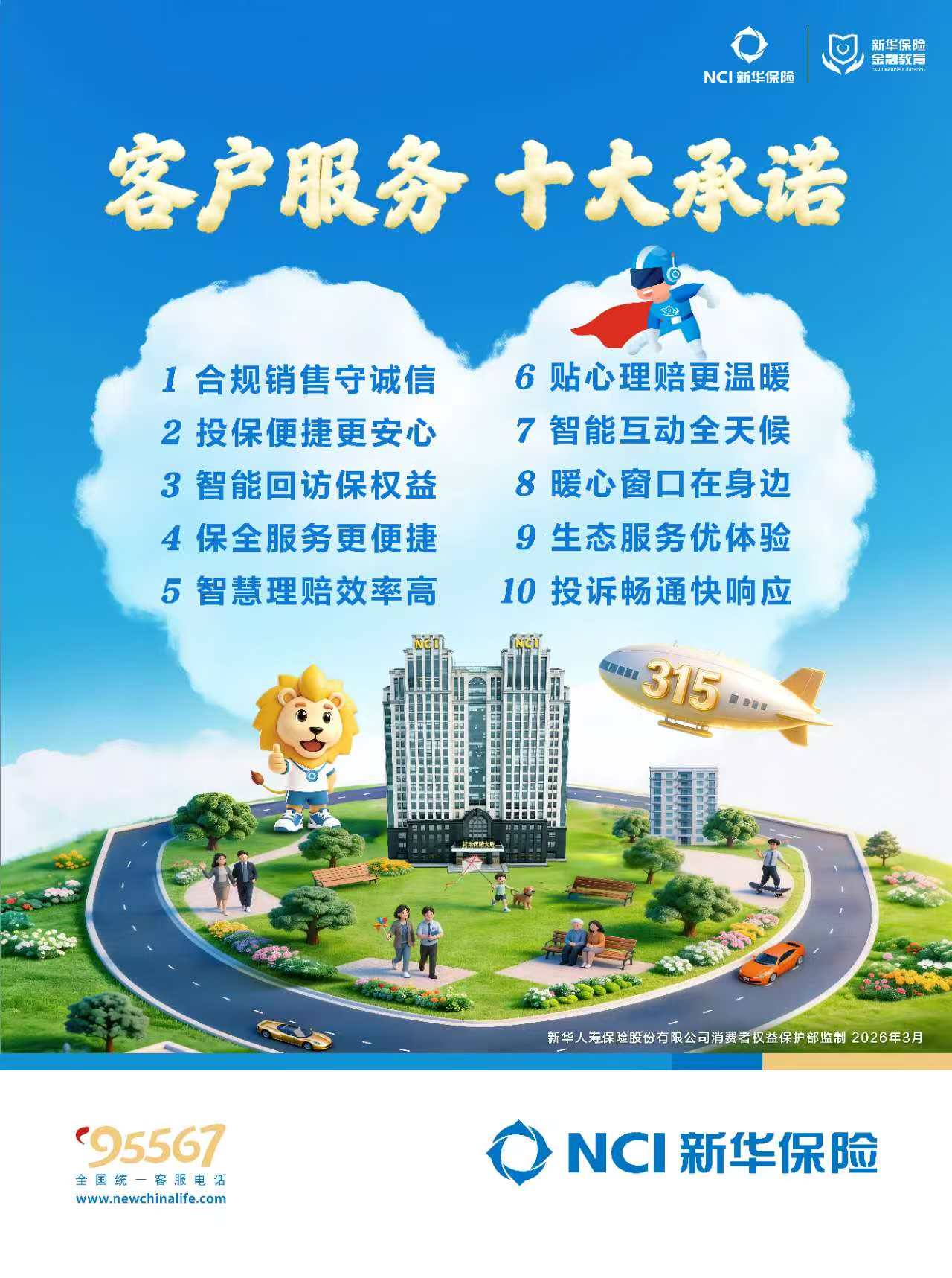 新华保险始终坚持以消费者为中心的发展思想,深入践行金融工作的政治性、人民性,严格落实自身主体责任,在“3·15”即将来临之际,全新发布2026年客户服务十大承诺,持续优化保险全流程服务,开展服务承诺践诺,拓展服务广度深度,大力弘扬中国特色金融文化,用心诠释“好服务在新华”深刻内涵。