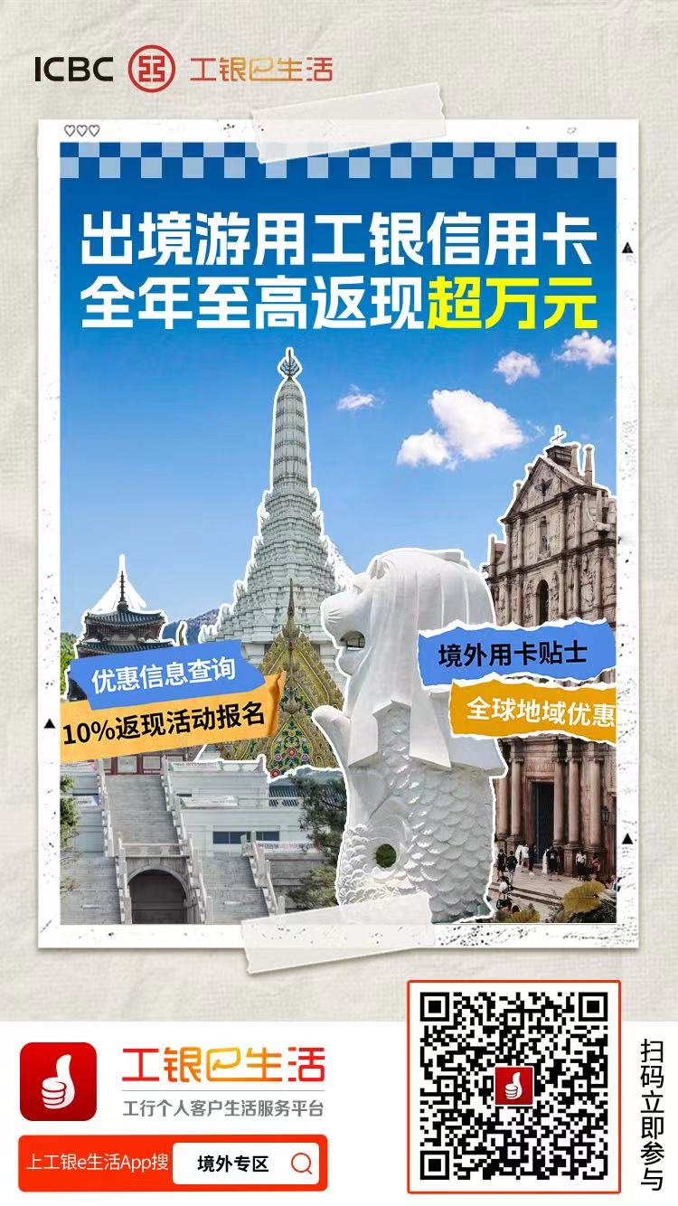 五一假期临近,为满足广大客户境外消费的多样化需求,工商银行提供多款以境外消费笔笔返现为核心权益亮点的特色信用卡产品,最高返现力度达2%,叠加“爱购全球”境外消费最高10%返现福利,助力广大持卡人出境消费开心舒心。
