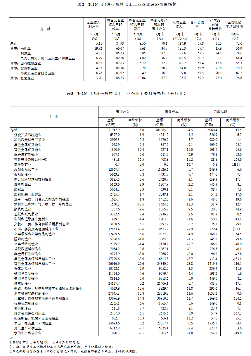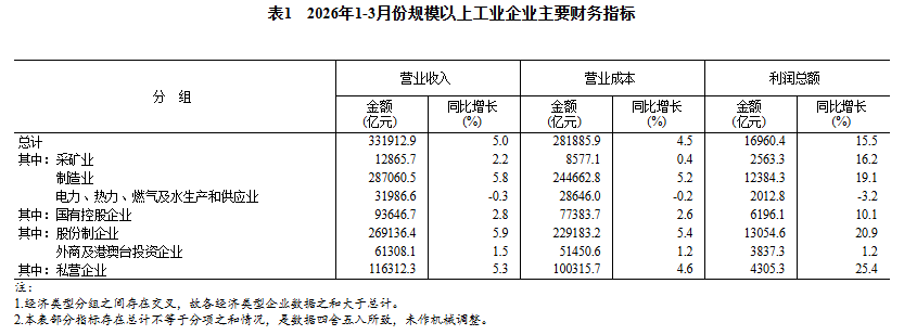 ——国家统计局工业司首席统计师于卫宁解读2026年1—3月份工业企业利润数据