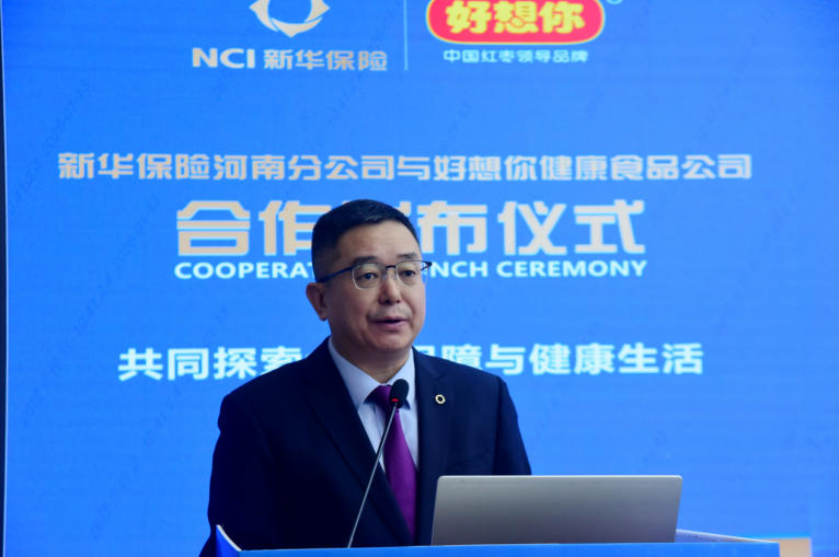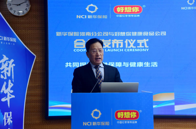好想你健康食品股份有限公司副总经理石聚领致辞中,对新华保险的实力与口碑给予了充分肯定。他表示,此次合作是基于共同价值观的必然选择,是优势互补、资源共享的共赢之举。好想你将以其在健康食品领域的专业与积累,与新华保险一道,为消费者带来更具温度、更全方位的健康生活解决方案,共同助力“健康河南”建设。
