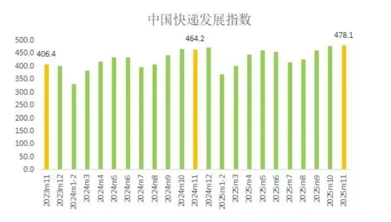 11月中国快递发展指数达478.1,年业务量首破1800